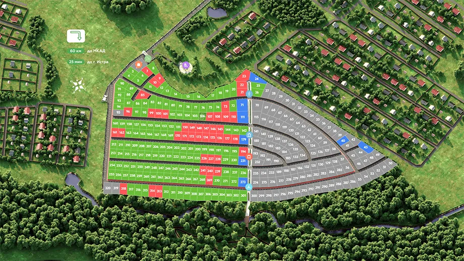 Территория разделена на 320 участков площадью от 6 соток. Это земли сельскохозяйственного назначения под ИЖС, и реализуются они без обязательного подряда. Здесь можно по своему проекту обустроиться или заказать дом от застройщика. А дальше выбор за вами: отдыхать, заниматься садоводством или проживать на загородном участке с официальной пропиской.